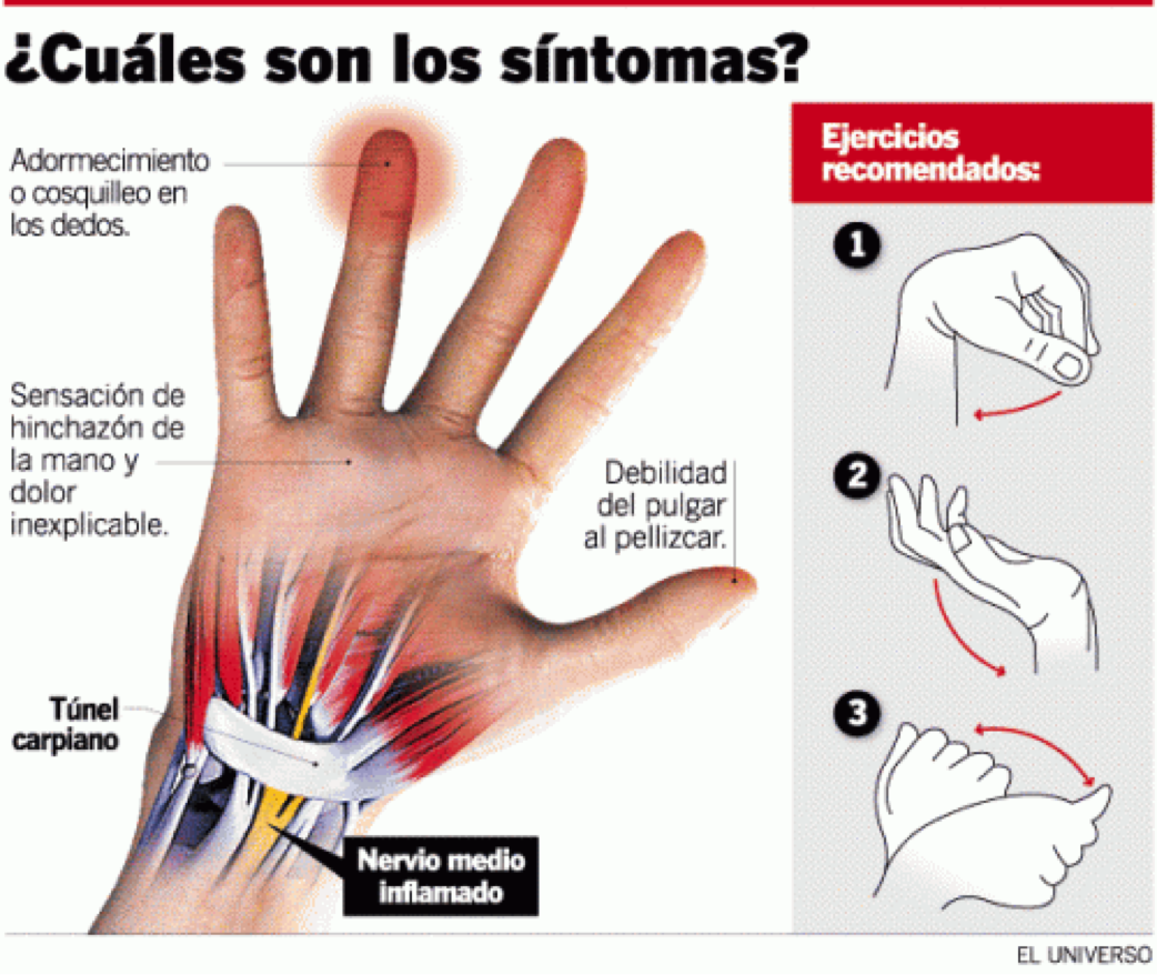 Además de estos síntomas, aquí puedes ver una imagen en la que aparecen dolores de mano cuando estas todo el día enganchado al teléfono móvil, táblet..